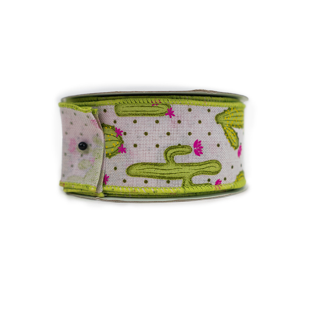 / RIBBON 1.5″ X 10YDS CACTUS PINK AND GREEN