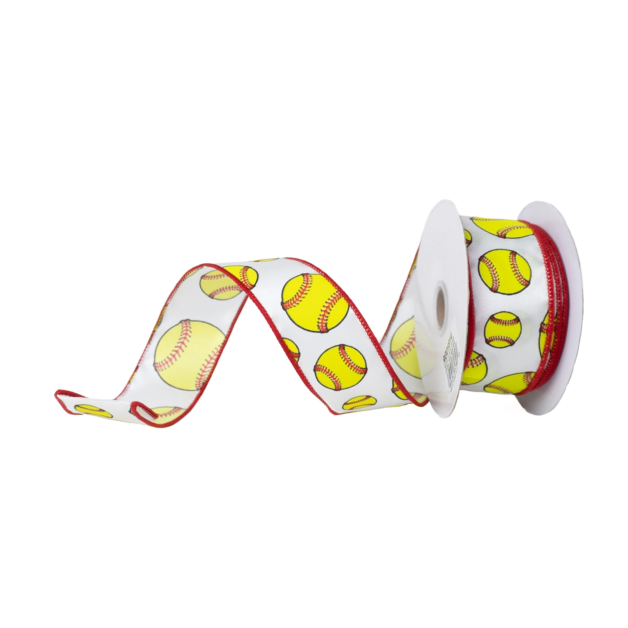 / RIBBON 1.5″ X 10YDS SOFTBALL WHITE, NEON YELLOW AND RED
